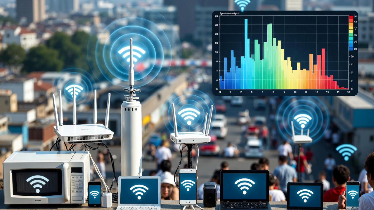 در شهرهای بزرگ یا ساختمانهای مسکونی پرجمعیت، شبکههای وایفای مثل یک بزرگراه شلوغ عمل میکنند. هر روتر سیگنالهایی پخش میکند که میتواند با سیگنالهای دیگران تداخل ایجاد کند.